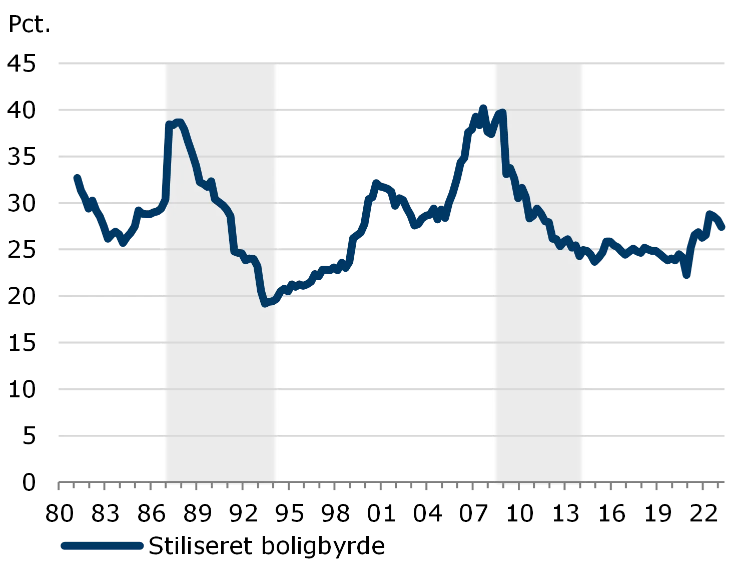 | Note: Nominel huspris er kontantprisen på enfamiliehuse fra Danmarks Statistik, og indkomsten er husholdningernes disponible indkomst fra Nationalbankens MONA-databank. Begge serier er sæsonkorrigerede. Den disponible indkomst er korrigeret for databrud tilbage i tid samt renset for ekstraordinært skatteprovenu fra omlægning af kapitalpensioner i 2013-15. Vækst i reale boligpriser for enfamiliehuse er fra MONA's databank. Kilde: Danmarks Statistik, MONA's databank, Skat og egne beregninger. |