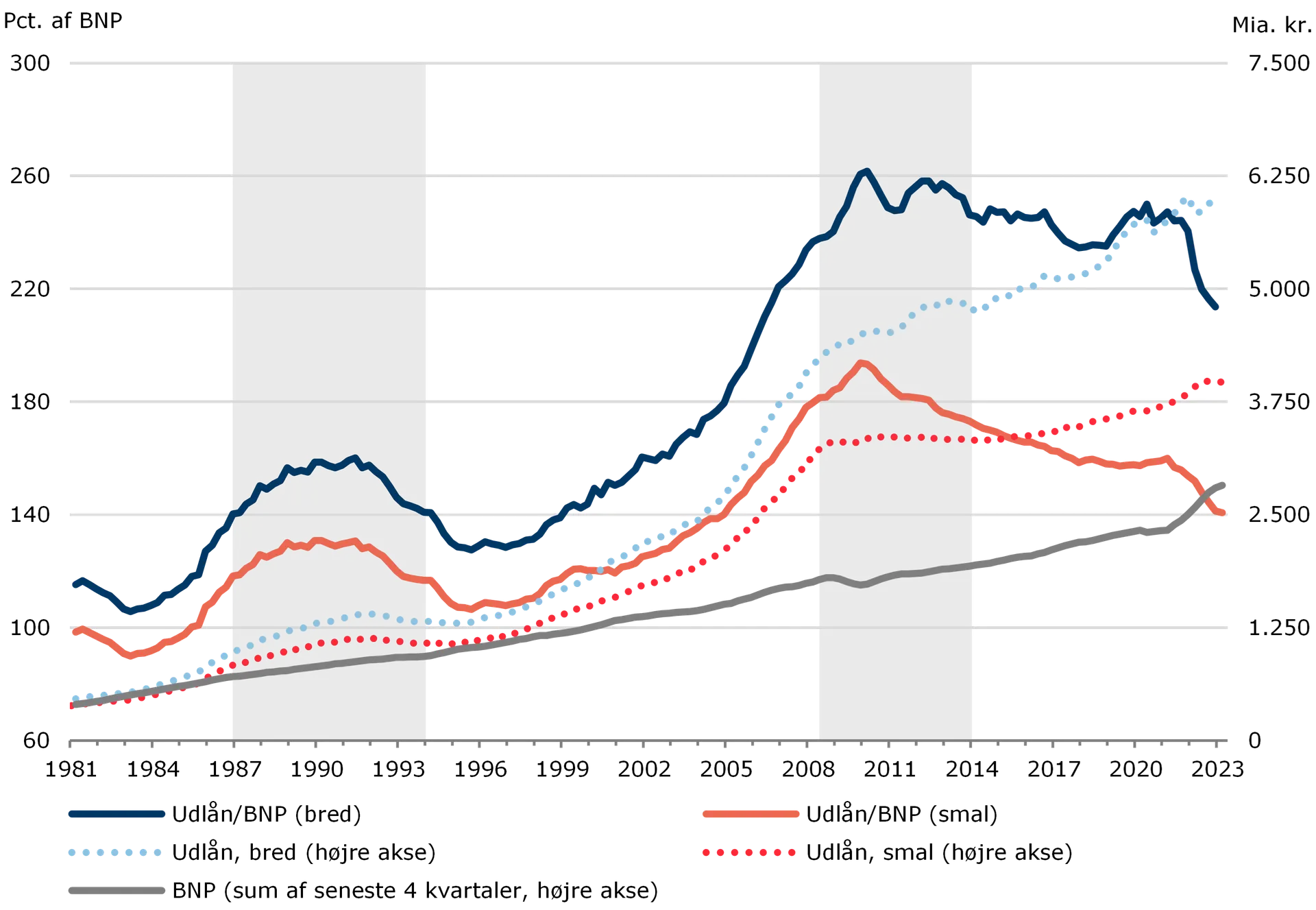 | Bred og smal definition afudlån samt BNP | Figur B.1 |