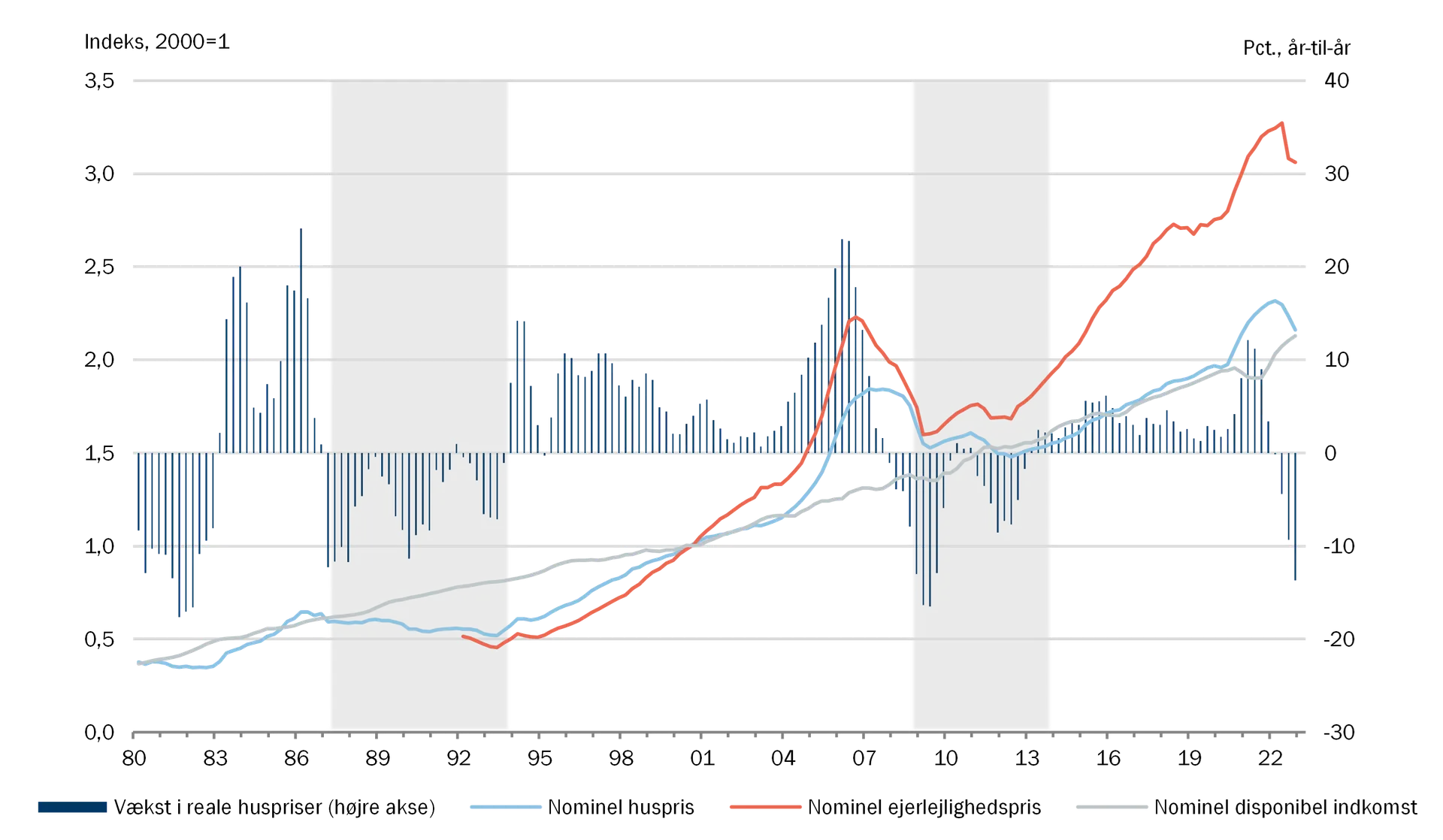 | Boligpriser og disponibel indkomst | Figur B.2 |