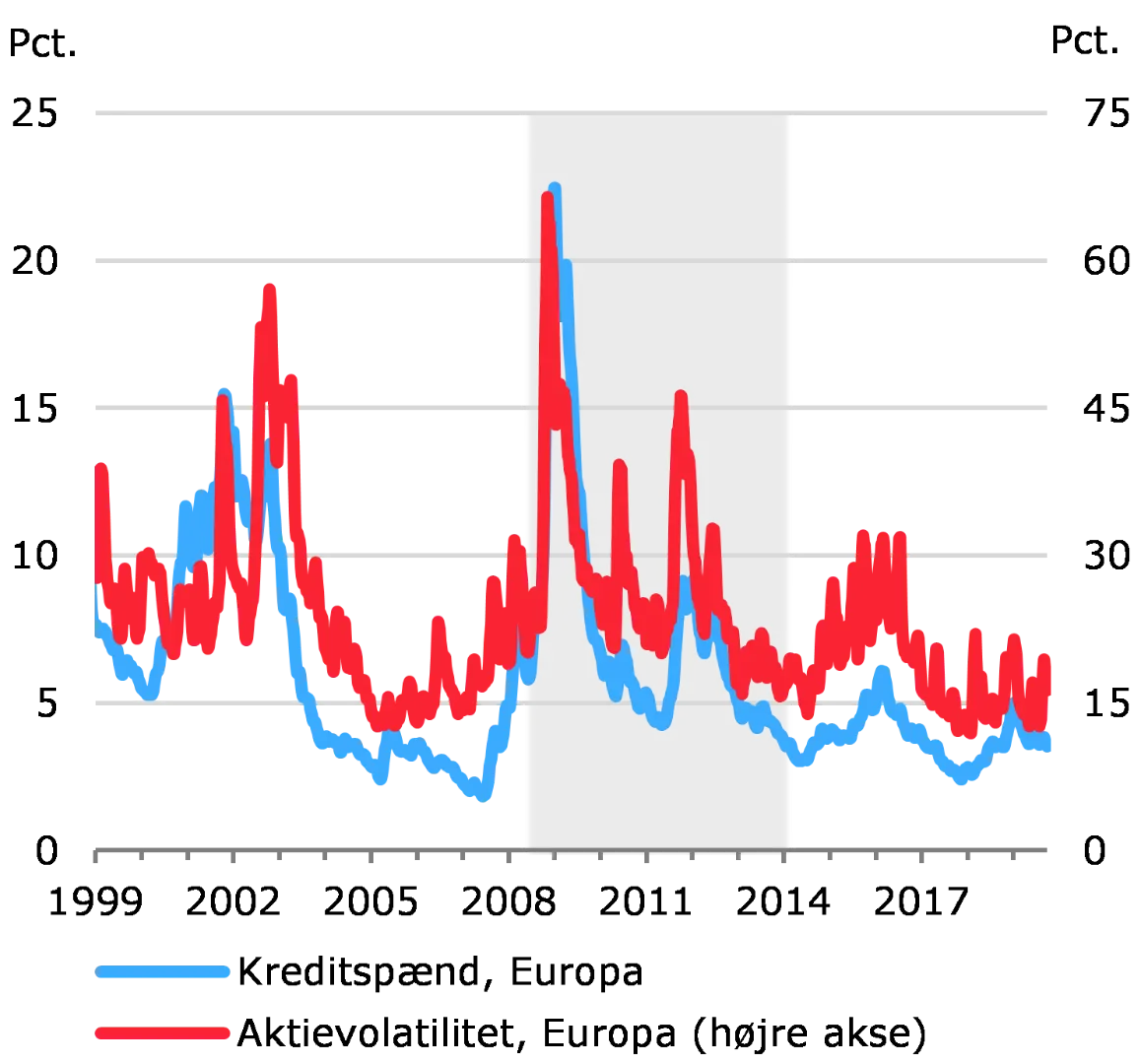 Det danske finansielle system påvirkes i høj grad af udviklingen på de internationale markeder. Øgede risici for den globale økonomi har resulteret i større udsving og usikkerhed på de finansielle markeder i løbet af 2019. Risikoopfattelsen på de finansielle markeder har dog været meget lav i en lang årrække. I kombination med det generelt meget lave rentemiljø har det givet anledning til søgen efter afkast og risikotagning blandt finansielle virksomheder, både i udlandet og Danmark. Markedsdeltagerne forventer negative pengemarkedsrenter i en længere periode fremadrettet, både i Danmark og euroområdet.