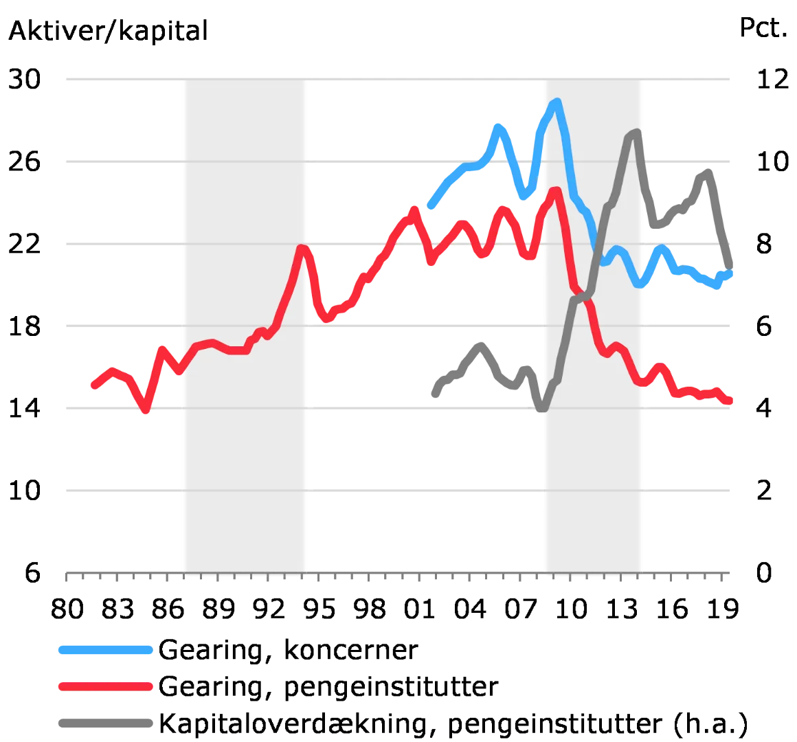 Et andet kommende krav er et minimumskrav til institutternes gearingsratio, der ifølge nye EU-regler skal opfyldes fra 2021. Mens bufferen opgøres i forhold til risikovægtede eksponeringer, opgøres gearingsratioen i forhold til ikke-risikovægtede eksponeringer. Kravet til gearingsratioen indebærer et højere krav til kapitalen end det risikobaserede minimumskrav for koncerner, der har en stor andel af aktiver med meget lave risikovægte, som fx realkreditlån. Kravet betyder, at nogle systemiske koncerner i en krise ikke fuldt ud kan anvende deres kapitalbuffere til at absorbere tab, før de rammer minimumskravet til gearingen.