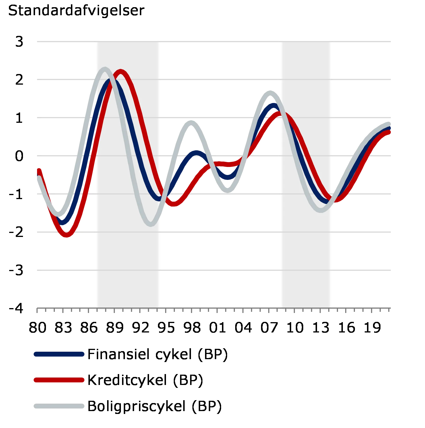 De lave renter og lempelige finansielle forhold danner i kombination med den økonomiske genopretning grobund for fortsat opbygning af risici. Risikoopfattelsen er igen lav og på lignende niveauer som før covid-19-krisen. Priserne på aktier og boliger er steget kraftigt gennem det sidste år. Markedsdeltagerne forventer fortsat lave renter i en længere periode fremover.