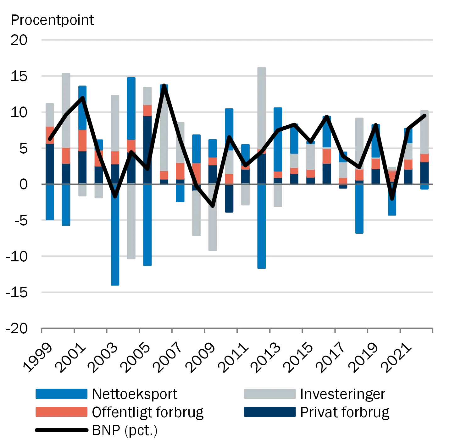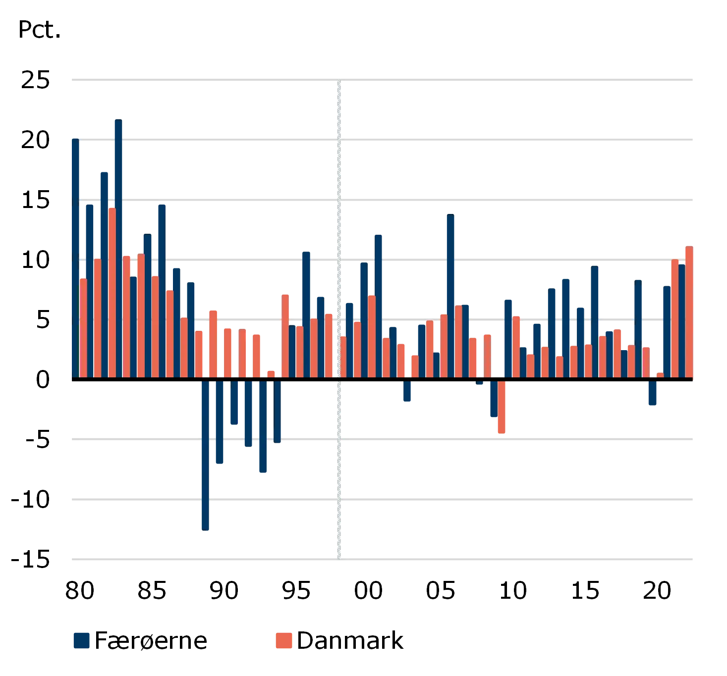 Den færøske økonomi er lille og åben med en koncentreret erhvervsstruktur, der i høj grad afhænger af fiskeri og fiskeopdræt. Det gør økonomien sårbar over for negative økonomiske stød, der gennem direkte og indirekte effekter kan medføre tab i banksektoren og forstærke udsving i realøkonomien. Historisk har der været store udsving i den færøske økonomi og perioder med stor variation i de færøske bankers nedskrivninger. Samlet set er det vurderingen, at den færøske finansielle sektor er sårbar over for de strukturelle forhold, der kendetegner den færøske økonomi, se også bilag A.